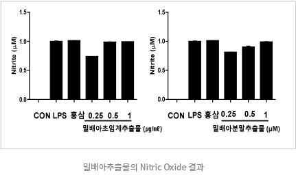 Xác nhận hiệu quả của chiết xuất mầm lúa mì như một thành phần chức năng tăng cường miễn dịch (Oxit nitric được tạo ra bởi hoạt động của enzyme iNOS trong đại thực bào, và độ hấp thụ của nó được phát hiện bằng cách sử dụng thuốc thử Griess).