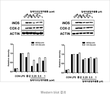 Xác nhận hiệu quả của chiết xuất mầm lúa mì như một thành phần chức năng tăng cường miễn dịch (bằng cách so sánh mức độ biểu hiện của iNOS và COX2 trong các đại thực bào được kích hoạt được điều trị bằng chiết xuất mầm lúa mì đồng thời với LPS so với điều trị bằng LPS một mình, sử dụng Western blot và qPCR).